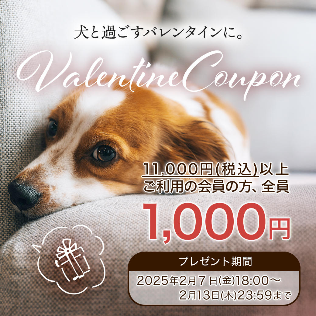 【終了】《2/13(木)23:59まで》犬と過ごすバレンタインに使える1,000円クーポン【メンバー限定】
