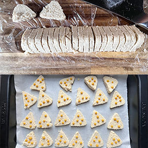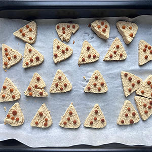 POCHI ナチュラルチーズボール トレーニングビッツを少し押し込んでのせる(押し込みすぎるとクッキーが崩れてしまうので、少しのせるイメージで)
