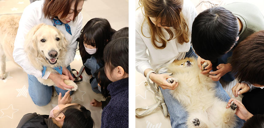 「指はいくつある?」など、犬の足裏を観察。仲良くなるためには、相手をよく知ることが大切という気づきも得られるでしょう