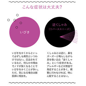 ただし、異物の混入は外見から判断するのは難しく、口から内視鏡を入れて初めてわかるケースもあるます。また、鼻腔内の粘膜をきれいにするために、生理的に鼻水やくしゃみをすることもあるので覚えておきましょう。