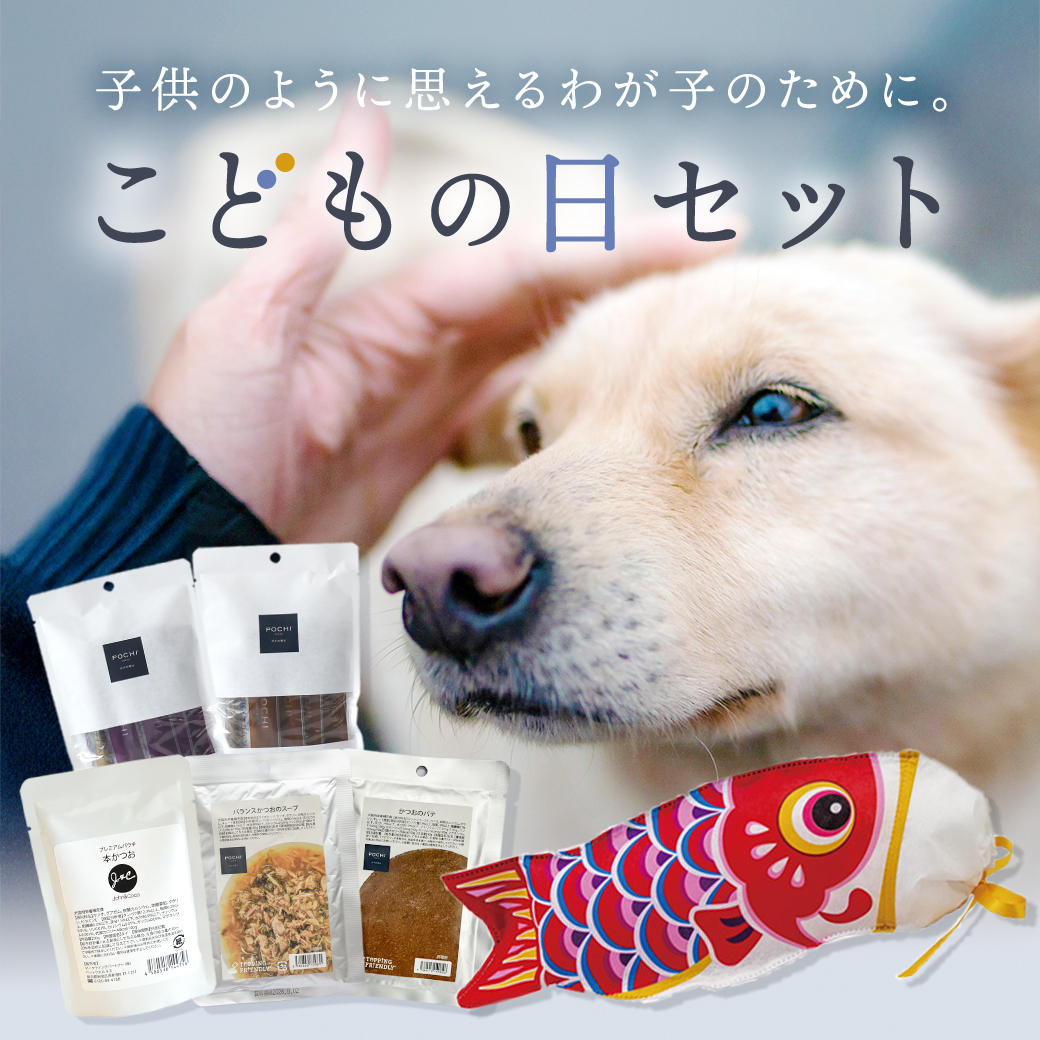 POCHIでは縁起物の「カツオ」を使ったアイテムの中から、なめらかな仕上がりの「かつおのパテ」、かつおの旨みや香りが凝縮された「バランスかつおのスープ」、お肉たっぷりで低脂質・低カロリーな「J&C プレミアムパウチ 本かつお」をそれぞれ3個ずつ、計9個をこどもの日特別セットとしてご用意しました。