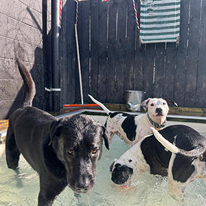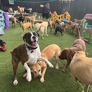 「犬たちがいつもハッピーでいられるよう、おもちゃやパズル、屋外アドベンチャーまでさまざまなエクササイズとアクティビティを組み合わせています。ほかの犬たちを遊ぶときは常に犬たちの様子を注意深くチェックし、安全に過ごせているか確認しています。デイケアは家庭で過ごしているだけでは体験できない集団生活を通して犬に社会性を身につけさせる絶好の機会といえるでしょう」