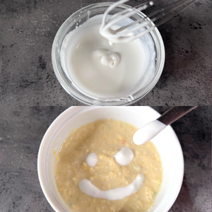 とうもろこしは食べにくいし、皮が気になるので手作り食ではあまり使わない食材…。でも、ほんとはあまくておいしいとうもろこし。なので、このコーンスープならうちの子も食べられるかも!?早く食べたい様子でニコニコマークとにらめっこしてます(笑)思ったとおり、ペロッとなめてすぐに完食。コーンスープは濾したり、とろみをつけるために生クリームを使ったり、ゆっくり火をいれたりと面倒なことが多いけど、キズラを使えば、体に良くてとろみもつくのでとても簡単にできました。ぜひ試してみてくださいね。