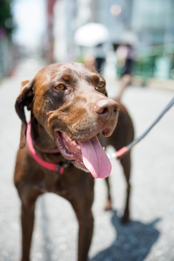自然の中を駆け回るマリオは迫力たっぷりで写真映えしますが、東京でのマリオも、都会の風景にブラウンの毛並みが美しく映えて素敵です。植え込みの犬の匂いに反応してぐいぐい引っ張って行くなど、確かに狩猟犬の片鱗を感じるシーンもあるのですが、榊原さんの顔を見上げて盛んにアイコンタクトを取る様子などには、穏やかな家庭犬らしさも強く感じます。狩猟犬の本能と誇りを胸に秘めつつ、都会の家庭犬生活にしっかり馴染んでいるといったところでしょうか。