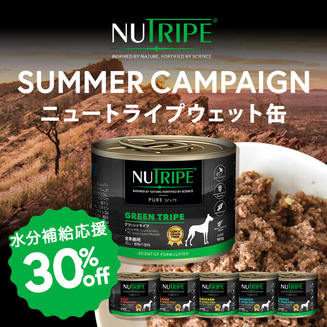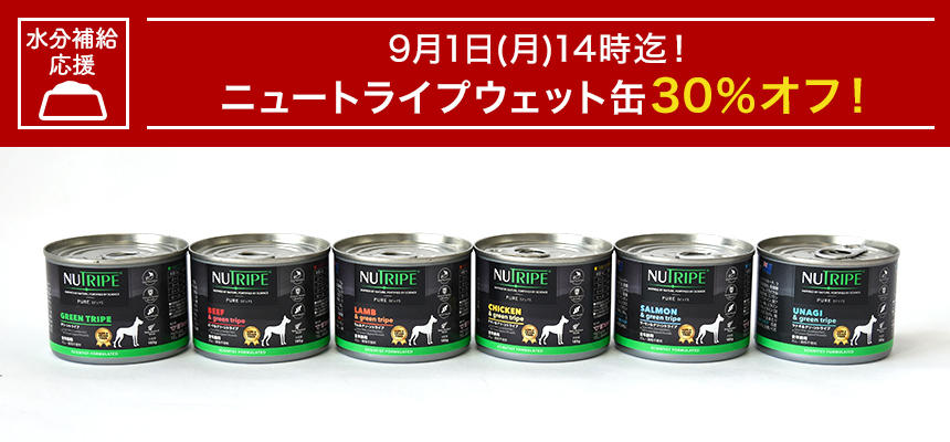 ニュートライプのウェット缶6種すべて30%オフとなりますので、この機会にぜひお試しください。