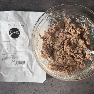 残ったソースはいつものフードにトッピングしたらとても喜んでくれました。