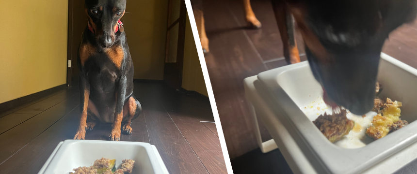 初めてでも安心!犬が喜ぶ手作りごはんレシピ #ズッキーニのステーキのイワシソース添え