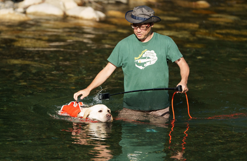 さて、この夏は温暖化が進む近年でも、特に暑いですね。我が家は避暑地の軽井沢地域にありますが、以前は滅多に超えることがなかった30度オーバーが当たり前の夏を過ごしています。ルカを連れて楽しめる涼しい散歩場所や遊び場を探すのにもひと苦労。山に入ればだいぶ涼しくはなるのですが、今度は熊の出没情報が異常に増えているので、あまり人里離れた山間部には近づけません。そこで、ある程度開けた場所にある川・湖や、整備されたプール付きドッグランなどの水辺に行く機会が増えています。そして、ルカの場合、この水辺での遊び方が、アイメイト候補犬から家庭犬になったことに伴う「変化」を感じさせる指標の一つになっています。