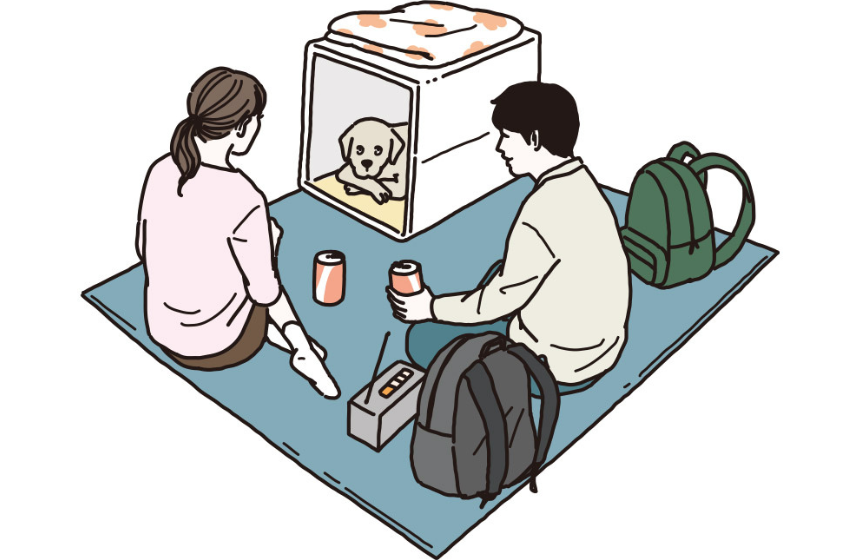 犬がいることで気を使わずにすみ、プライバシーを保てるのが車やテントでの避難。ただし、熱中症やエコノミー症候群のリスクもあります。車内にも防災用品を積んでおくといいでしょう。