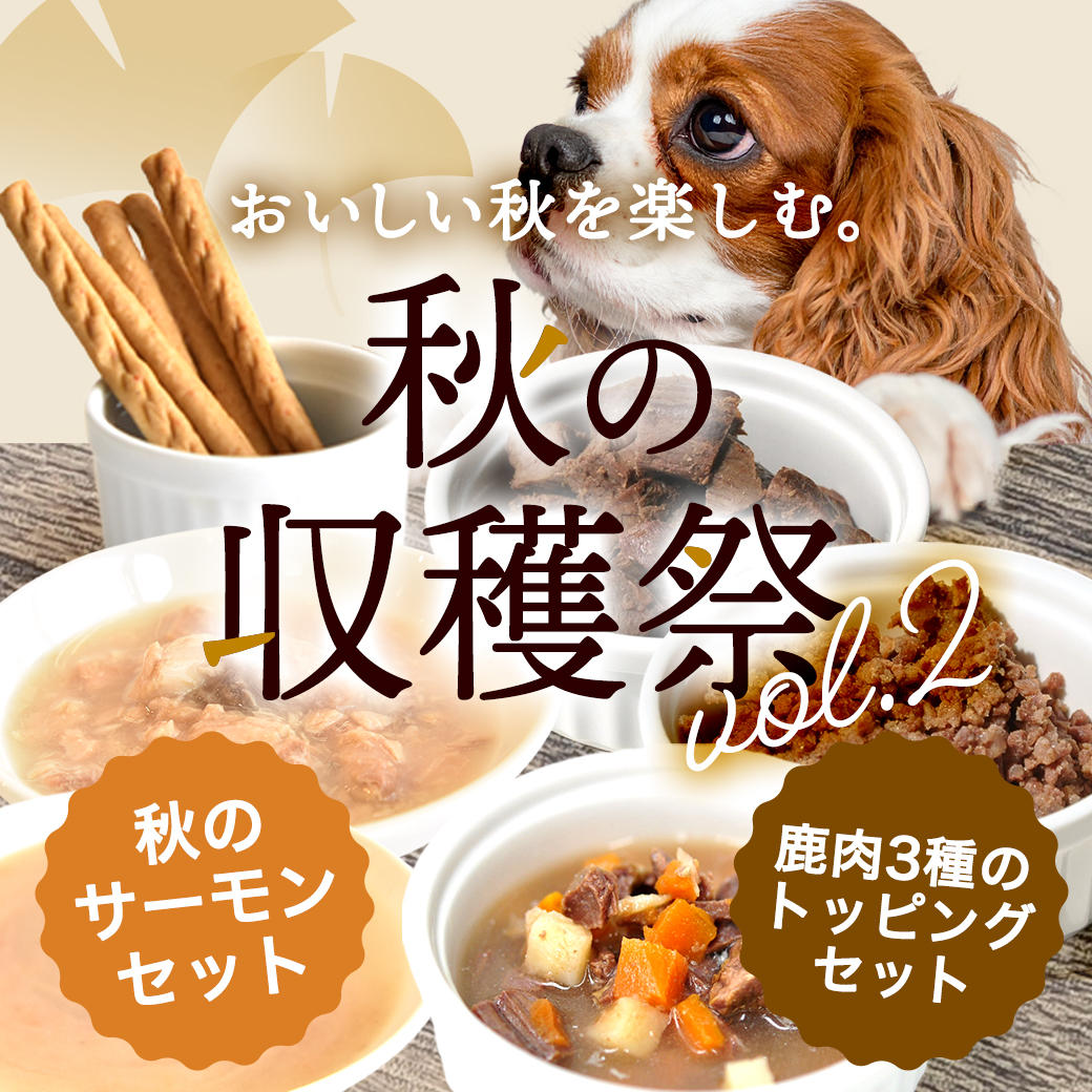 今回ポチではおいしい秋に向け、鹿肉3種のレトルトセットと、サーモンを使ったレトルト&オヤツの特別セットをご用意しました。