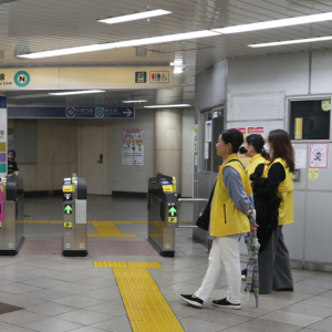 今回で47回目を迎えるアイメイト・デーの当日、駅や会場までの道中に黄色いベストを着た誘導員の姿がありました。これは、使用者の方が通りかかった際に声をかけて道を伝えたり、誘導したりするため、アイメイト後援会員がボランティアとして担当していました。