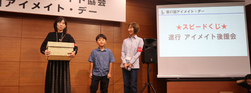 そして最後に開催されたのが、豪華景品の当たる「スピードくじ」。受付で配付された番号を受け取った全員が平等に参加対象となるくじのため、使用者、一般参加者、支援企業の代表者など、幅広く当選しており、大いに盛り上がりを見せました。
