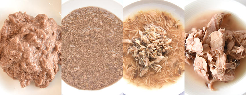 今回ご用意した「まぐろとかつおのお魚レトルトセット」は、 かつおの旨みや香りが凝縮された「バランス かつおのスープ」、パピーやシニア犬も食べやすい、なめらかな仕上がりの「まぐろのパテ」と「かつおのパテ」、70グラムと使いきりサイズの「J&C マグロフィレ缶」各2個ずつの計8アイテム入り。