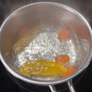 1.人参、黄色パプリカは柔らかくなるまで茹で、冷ましておく。