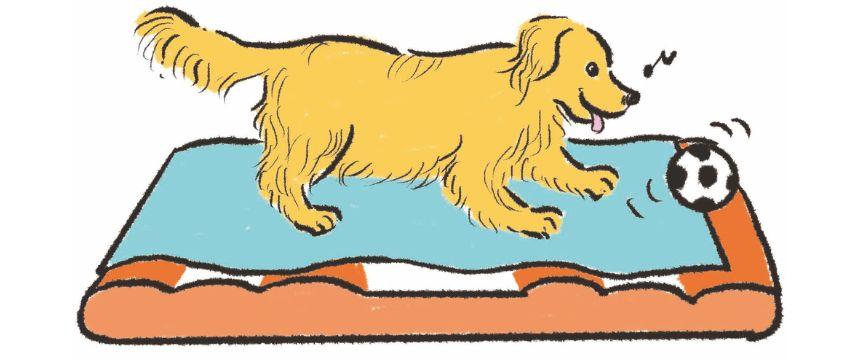 猛暑や大雨で散歩に行けない時や、散歩が難しいハイシニア犬にはビーチマット歩きがオススメです。空気で膨らませたマットは足場が不安定なため、自然と関節が動き、体幹や指先の力を使う全身運動になります。数往復してからオヤツをあげるなど遊び感覚で取り入れると、楽しみながら筋力アップと脳への良い刺激が得られます。