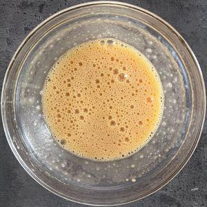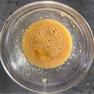 1.ボウルに溶き卵を入れ、きび砂糖を加え、よく混ぜる。