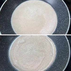 7.弱火で生地を流し込み、手早く広げて薄く焼く。裏返しにして30秒ほど焼いたら取り出して冷ましておく。これをあと5回繰り返す。
