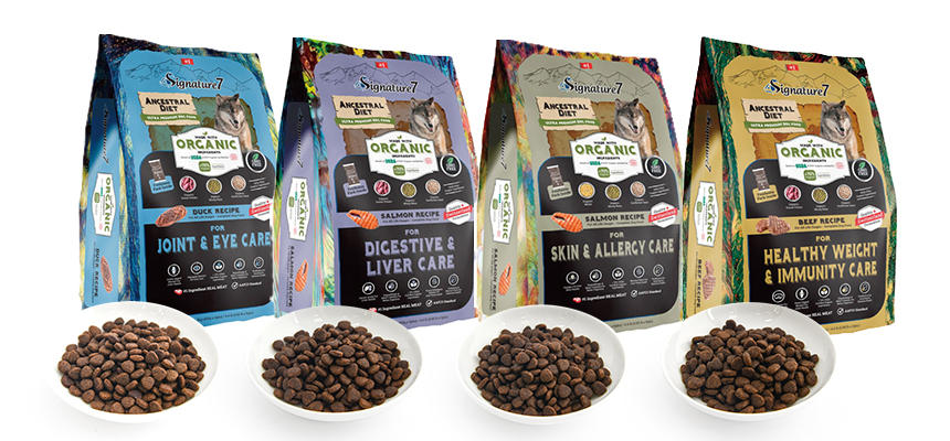 オーガニック原材料を70%使用した総合栄養食「Signature7(シグネチャー7)」のアンセストラルダイエットシリーズ。