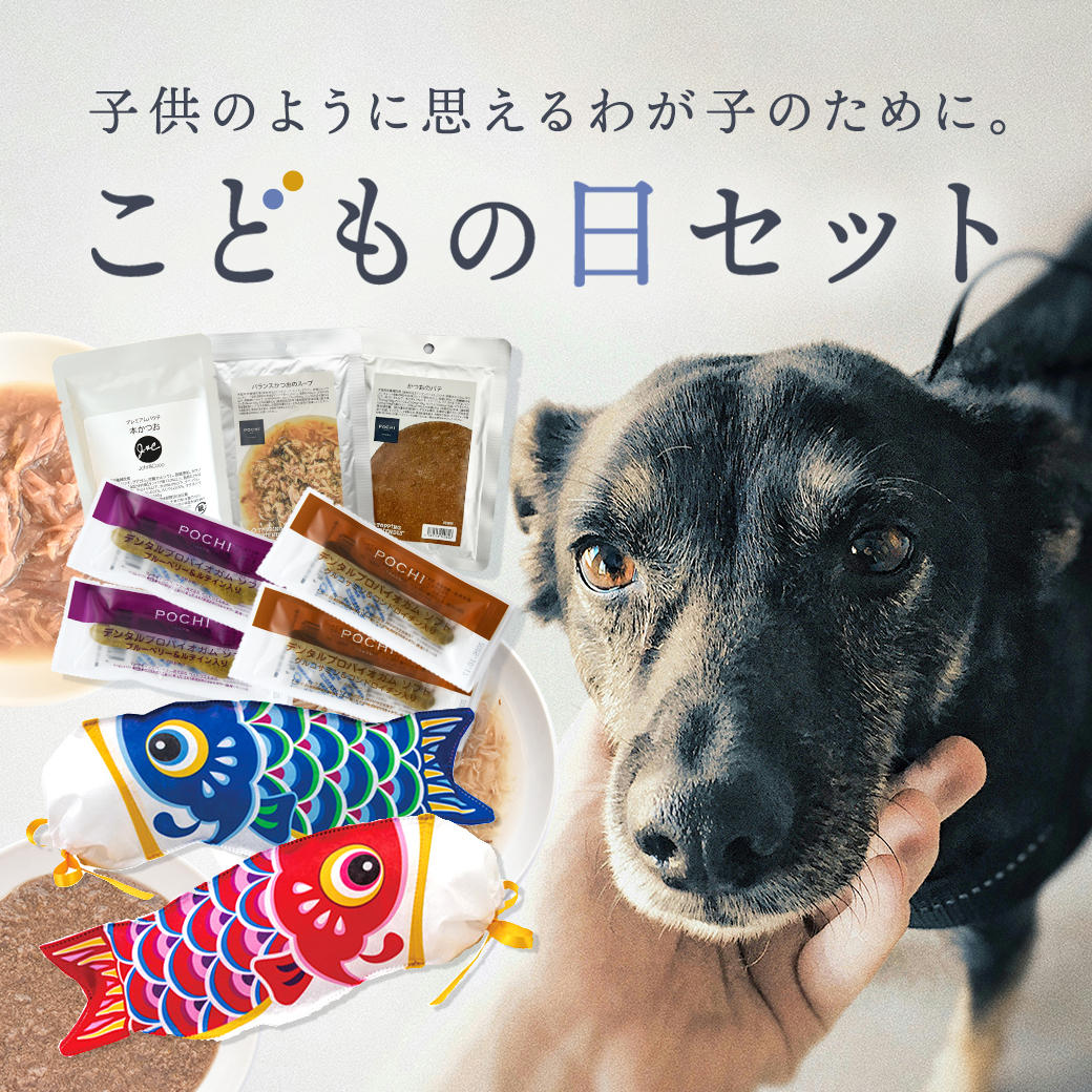 POCHIでは縁起物の「カツオ」を使ったアイテムの中から、なめらかな仕上がりの「かつおのパテ」、かつおの旨みや香りが凝縮された「バランスかつおのスープ」、お肉たっぷりで低脂質・低カロリーな「J&C プレミアムパウチ 本かつお」をそれぞれ3個ずつ、計9個をこどもの日特別セットとしてご用意しました。