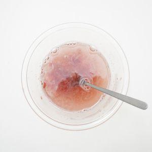 a-1. いちご層のゼラチンを水(ゼラチン用)でふやかす。