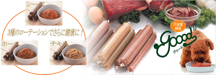 材料は人間の食材レベルで、食鳥・食肉検査に合格した肉を使うなど、安全性に気を配り、野菜は主に国内産を使用しています。 また、徹底した衛生管理の行き届いた食品工場で加熱処理をせずに製造しています。(ISO9001・14001認証取得工場)