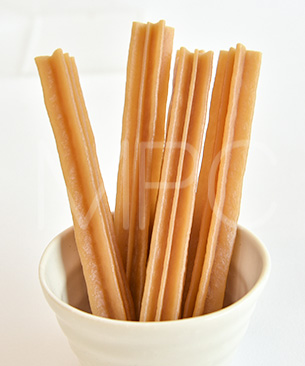 適度な硬さと独特な形状で、しっかり長時間噛むことができ歯垢の沈着を抑えます。人工着色料、香料、合成保存料不使用のデンタルケアおやつ。