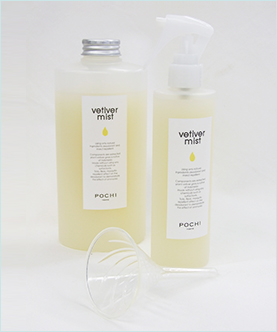 雨の日のお散歩後、ムレによってニオイが気になったりすることもありますよね。ベチバーミストは100%天然成分で虫除けから消臭までこなす、とっても便利なミストです。