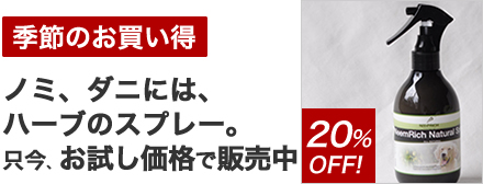 虫除け&毛艶に。ノミ、ダニなど虫除け効果の高いニームシード、シトロネラオイルを使用したスプレー。