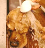 犬や猫の被毛は油分が多いため、水をはじきやすいのでじっくりとくまなくぬらしてください。 お湯で一度洗うぐらいの気持ちでたっぷりとぬらします。