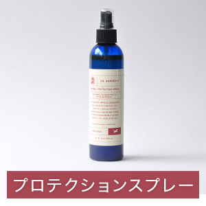 ケア用品は皮膚の敏感な犬にも安心して使えるナチュラルなオーガニック成分を使用したシャンプーと虫除けも兼ねたプロテクションスプレーの2種。