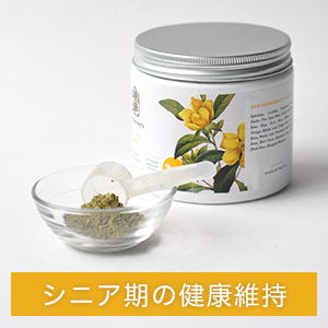 抗酸化力の高いハーブを組み合わせた、シニア犬の健康をサポートするハーバルサプリメント。