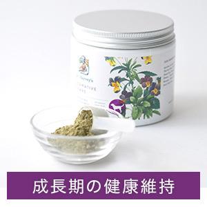 成長期の子犬に必要なビタミンやミネラルをすべて補給できるハーバルサプリメントです。