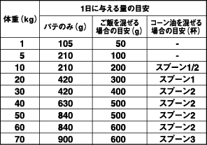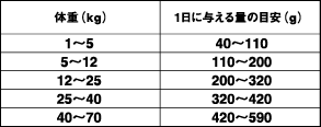 | ○全犬種対応のドライフード(目安量) | ![]() |