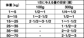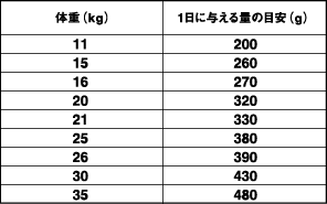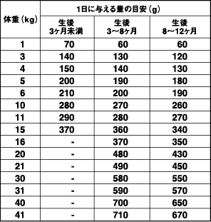 | ○全犬種対応のドライフード(目安量) | ![]() |
