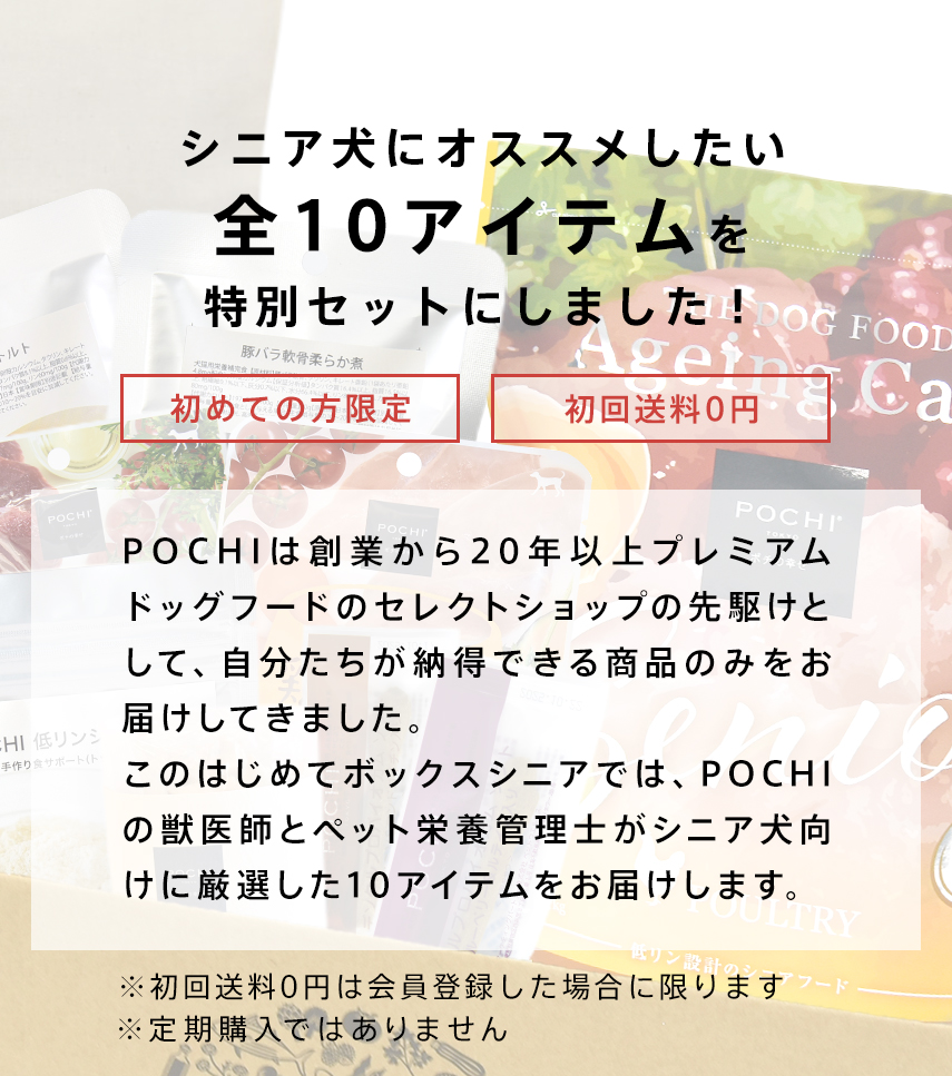 POCHI ザ・ドッグフード トライアルセットは、POCHIサイトをはじめてご利用の方は、無料の《会員登録》をいただくと、送料無料でお届けいたします。