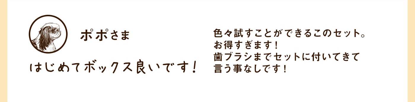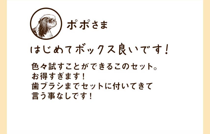 どうかこの「POCHI はじめてボックス」が、犬たちのおいしい体験になって、とっておきの笑顔を見せてくれますように。