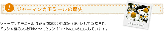 19世紀頃にオランダやポルトガルから日本に渡り「カミツレ」という名前で親しまれ、 日本薬局方にも第7改正(1962年)まで収載されていました。