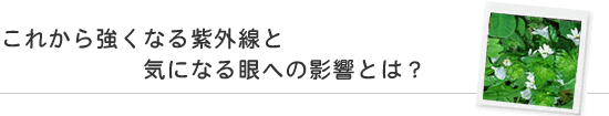 え、ほんと?! これから強くなる紫外線と気になる眼への影響とは?