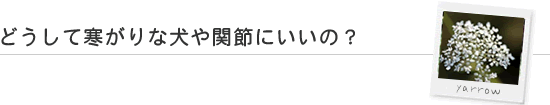 健康な血流を促し、痛みを和らげるこれらの「ヤロー」の働きを見てみると、犬たち、飼い主さんにとってもこの季節に常備しておきたいハーブのひとつと言えます。