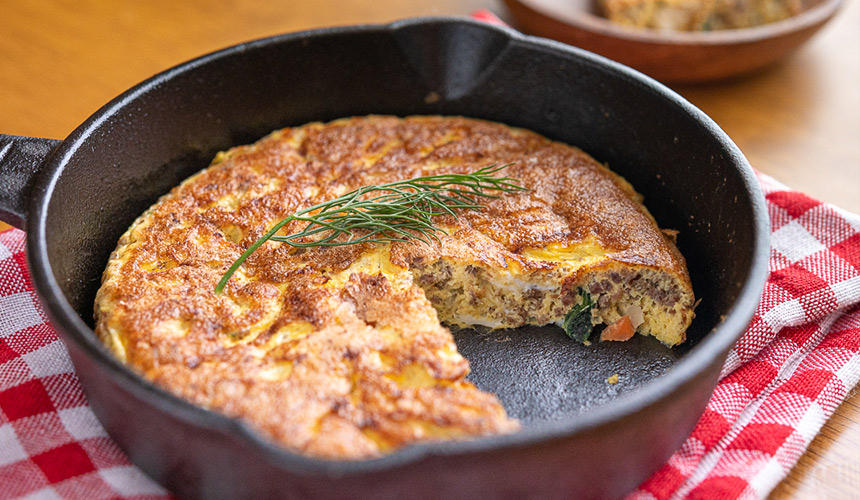 時短&簡単!犬の手作り食レシピ:エゾ鹿ミンチのスペイン風オムレツ