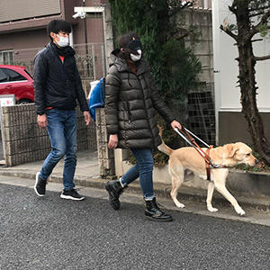 使用者さんとアイメイトは一心同体、歩くときには一体となります。