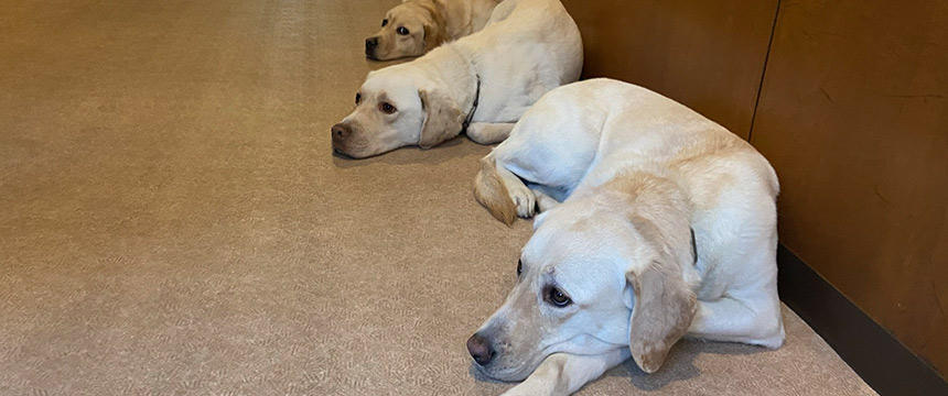 約1年をかけてたくさんの思い出を作った子犬たちは、成犬になり、アイメイト協会の指導員さんと行う訓練を経て、初めてアイメイト(盲導犬)となる資格を得ます。犬にとってアイメイト協会は学びの場。たくさんのことを約4か月間の訓練で吸収していきます。