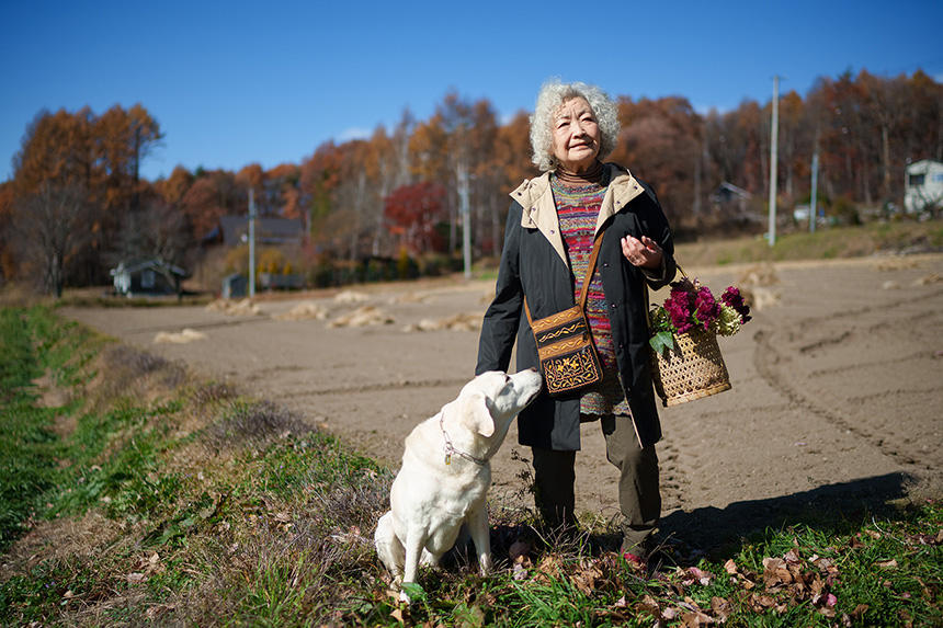 そして、犬が一緒に写っているのが「伝わる」最大の要因なのだろうと思う。犬の純真さと都会の不純物から離れた山の暮らしは、ピュアな点で一致する。犬の笑顔は、穏やかな老後の象徴である。