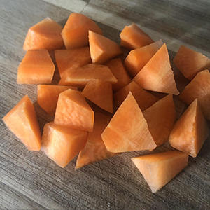 1.人参は皮を剥き、食べやすい大きさに乱切りに切る。