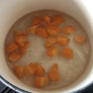 2.鍋に1の人参、水を加え、中火で人参が柔らかくなるまで煮る。