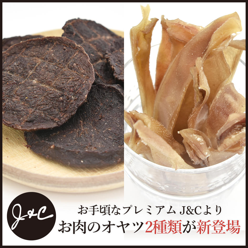 素材のおいしさを存分に活かし、無添加・無着色のプレミアムなオヤツが揃う「J&C(ジェイアンドシー)」より、お肉の旨みを凝縮した固めオヤツ2種類が新登場となりました。