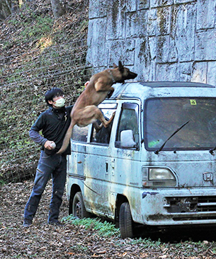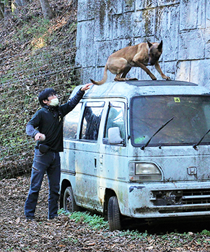 探知業務のトレーニング(写真:日本警備犬協会提供)