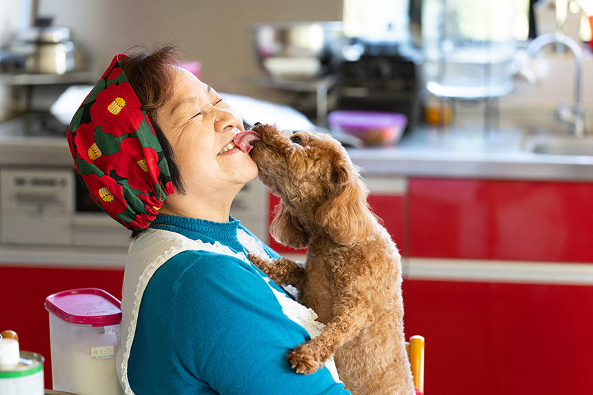 先月、「ペットのカレンダーと料理のフォトブックを作りたい」というY子さんの依頼で、鹿児島に飛んだ。Y子さん宅は、鹿児島市郊外の高台にある一軒家。そこで郷土の家庭料理を中心としたオリジナルレシピを主婦層に教えている。ワンフロアを打ち抜いた広いリビング・ダイニングキッチンの窓辺にドッグベッドがあり、そこがトイ・プードルの「モモ(♀4歳)」の居場所になっている。