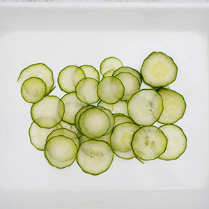 1.きゅうりに塩少々(分量外)で板ずりし、薄い輪切りにする。