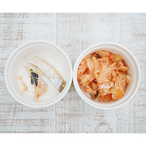 主原料:マンナンペースト、サーモン、卵殻カルシウム、タウリン、キレート亜鉛